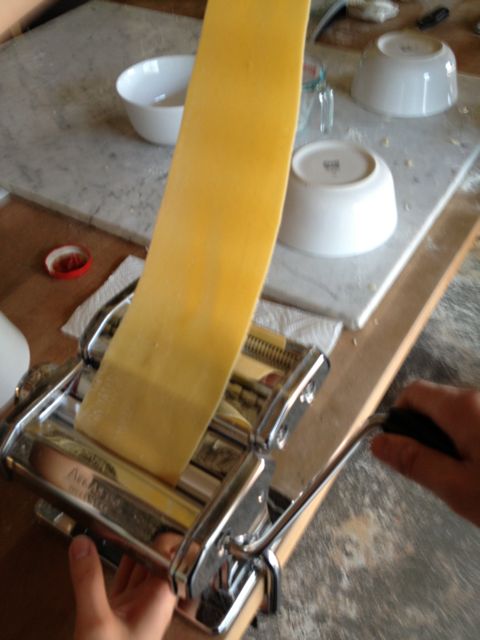 2. Three hands – If you’re using a machine to roll out and cut the dough then it’s almost impossible to do it by yourself. You need one hand to feed the dough into the machine, a second hand to turn the crank and a third had to guide the pasta out of the machine.