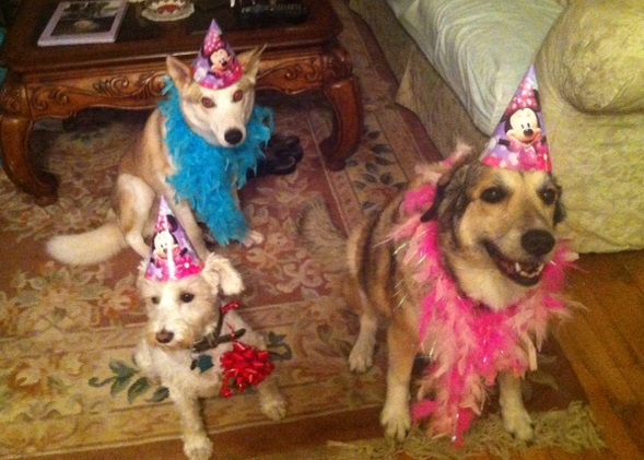 Cute doggie party pictures! My dog won’t leave a hat on her head for more than a minute.
