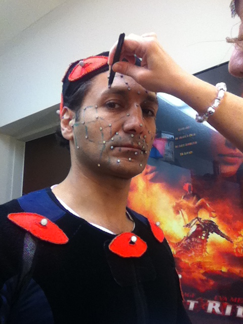 Cas: Sometimes LINE ! But not always .. For ACR I was shown a very rough video presentation of the gaming world …It looked like a monkey had been typing code on the keyboard …No resemblance to the epic beauty of the finished game … but it let me know the basic action then on CALL OF DUTY which was full motion capture. We had an empty green screen room with tape marks on the ground and a verbal description of the mountain cave we were in and the thunderous artillery blowing sand and dust in our faces etc. So it was all acting… but we did get to rush to the monitor after each take and see the animated characters doing the take we had just shot in a virtual environment ..it was sooo cool!