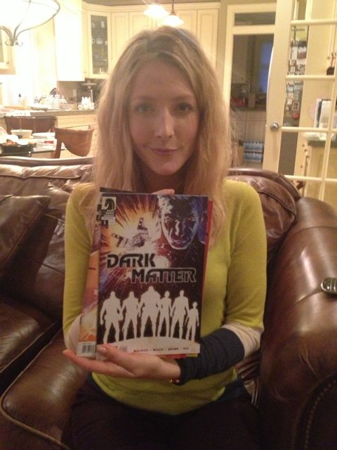 Well, look who it is! It’s my good buddy and former co-worker: uber-talented/super-successful actress Jennifer Finnigan. She’s in town shooting a movie (with my other pal, Cas) and dropped by the other night to say hi, eat some rotisserie chicken and, of course, check out the Dark Matter comic book (soon to be television?) series. Turns out she’s looking for an SF project and this could be the one!