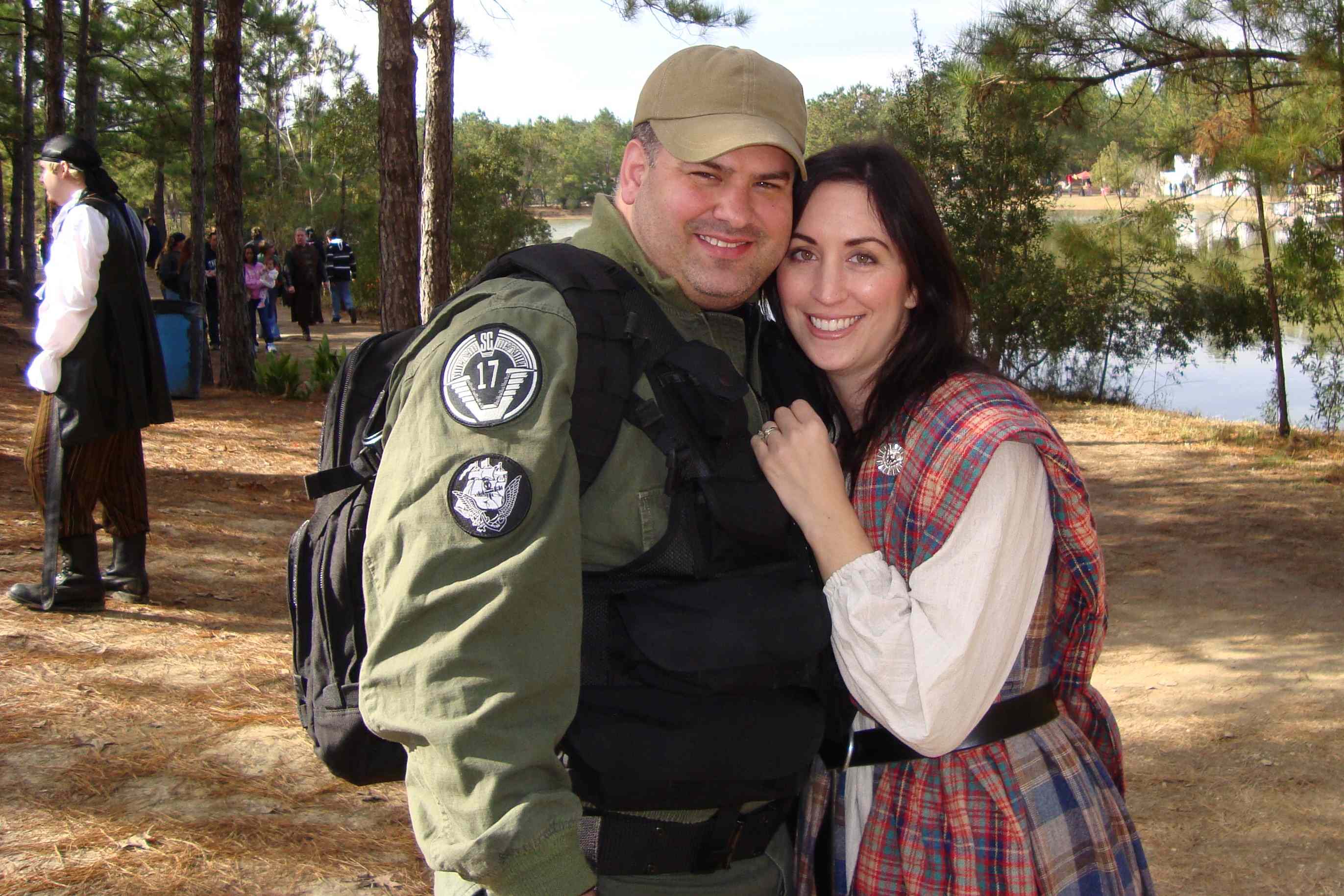 I’m still puzzled but I tried to help them. I could tell by their questions they didn’t have a clue about flight equipment. I was asking what was this for? They were being very vague… They only said they were working on a project… I became concerned about safety issues if they were trying to really fly, but then they told me it was for a movie! I said WOW I LOVE MOVIES! Then proceeded to tell them I did prop and costuming as a hobby with my wife and walked them over to my cork board with two 4×6 pics of me and the wife in full Stargate gear of course!