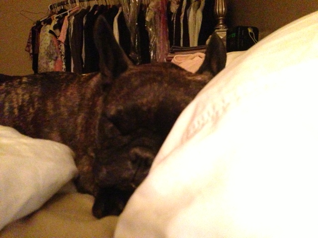 Back on the west coast, meanwhile, my pug Jelly is apparently missing me something terrible. This according to Akemi who claims she seems downcast and considerably less vocal – although her appetite remains as healthy as ever. My french bulldog Lulu, on the other hand, is coping just fine. Last night, she seized the opportunity of my absence to lay claim over my spot on the bed.