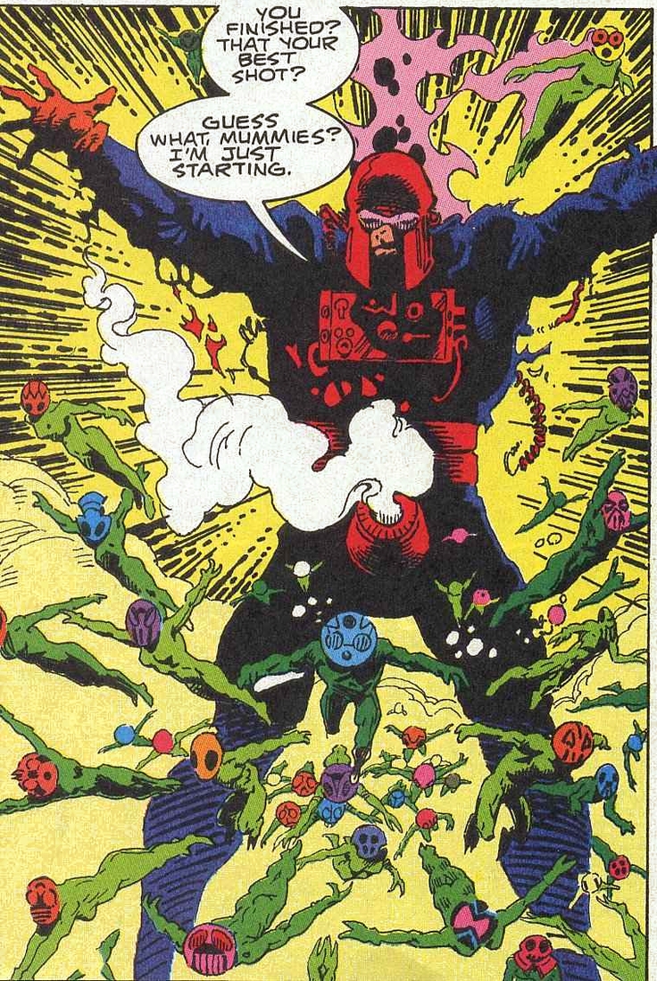 I’d also like to add the red/purple of Magneto’s costume never fails to make me shake my head. He’d fit right in at a Red Hat Ladies luncheon.