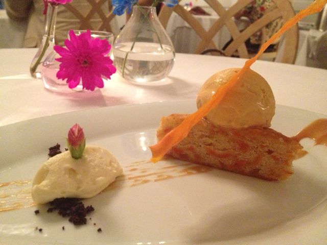 Finally, it was time for dessert – and, specifically, that chocolate ganaché. I’d been really looking forward to it. Alas, it turns it wasn’t available and so, after dismissing the likes of the too-fruity blueberry parfait, apricot souffle (which would have required a 20 minute wait), and the unconvincing blue cheese mousse with figs, I settled on the carrot cake with carrot ice cream.