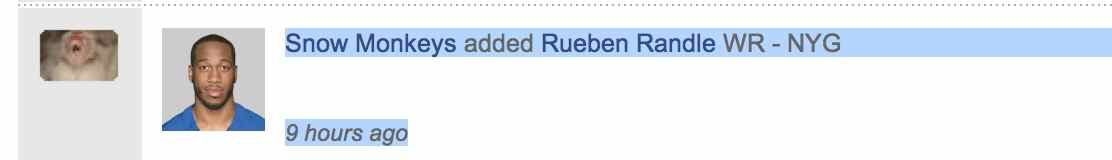Yes, that’s NFL.com telling me that my waiver wire selection of New York Giants receiver Rueben Randle went through! How’s that for a pleasant birthday surprise?