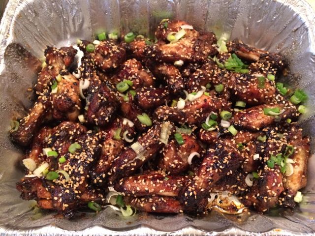 I see chives and sesame seeds on that barbecued chicken; man that looks good. If you can get the recipe I’d appreciate it.