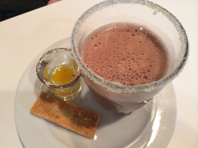 I was busy with Football Sunday festivities yesterday and, as result, missed a day in my ongoing quest to sample every hot chocolate being offered at this year’s Hot Chocolate Festival. To make up for lost time, we actually tripled our output today, sampling six different flavors. I know, I know. This is a marathon, not a race. I should be pacing myself. True but, if you’re two people, it’s so much easier to order to different hot chocolates each seating rather than a single one for sharing.