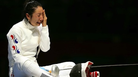 This one was painful to watch. With a one point lead over her German adversary with less than a second to go in her gold medal match, South Korean fencer Shin Lam was certain to emerge victorious. Unfortunately for her, the clock “stuck”, giving her opponent some extra time, time she put to good use by scoring a touch and snatching victory from the jaws of, well, somebody else’s victory. It was clearly a clock issue and, while the officials talked it over, viewers were treated to an inconsolable Shin Lam seated on the mat, in tears, as she awaited a decision. It finally came, one hour later but, with the extra time, officials were able to make the right decision and reversed the call, awarding the gold medal to the rightful win — Aaaah, just kidding. They screwed her over and gave the German the gold.