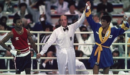 At the 1988 Summer Olympics in Seoul, American boxer Roy Jones Jr was on the receiving end of some suspect judging when he lost a decision to South Korean Park Si-Hun in their middleweight gold medal bout, this despite landing 86 punches to Park’s 32. After the match, one of the judges admitted he voted for Park Si-Hun because he assumed Jones had the win in the bag and simply wanted it to look close for the home crowd. Despite investigating and discovering that three of the judges were wined and dined by Korean officials prior to the bout, the decision was allowed to stand.