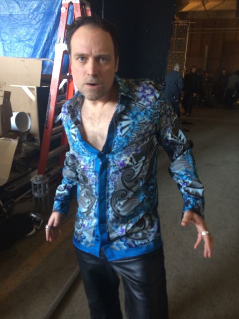 I admire people who dress like they just don’t care – what other people think. Lady Gaga. Don Cherry. And, of course, Dark Matter‘s Tabor Calchek. I knew the gang in wardrobe was going to have a lot of fun dressing him – maybe, I suspected, a little too much fun. So it was with a certain amount of trepidation that I made my way down to the costume department last month for a sneak peek at Tabor’s outfits. I was treated to a lot of comfy wear (see previous blog instalments) and then a bit of flash in the form of the type of shirt usually reserved for disco enthusiasts or East European gangsters. I loved it, but had only one small request. Instead of just having him in his underwear, lets give Tabor pants. Pleather pants!