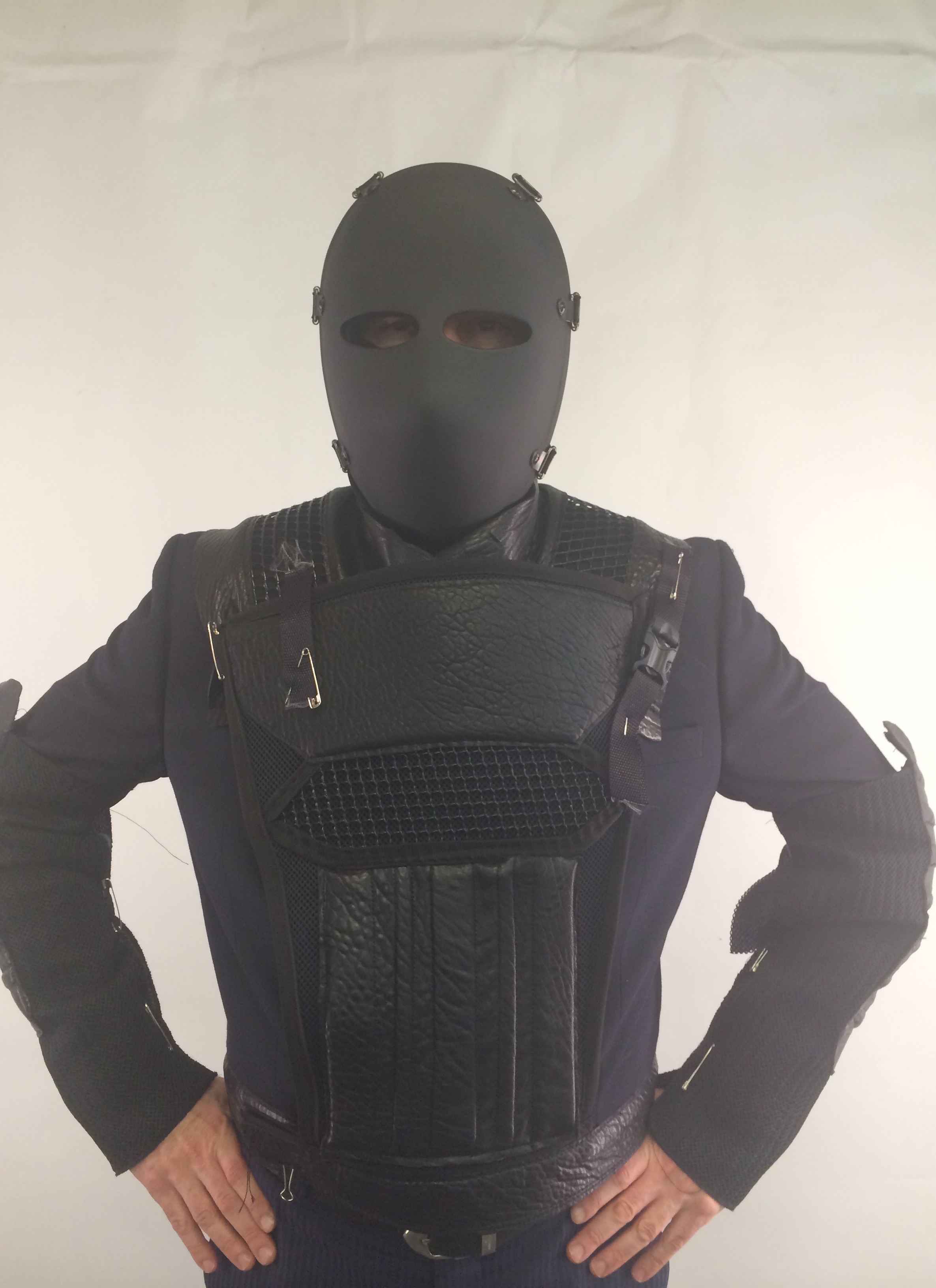 Love the outfit, but find the hands flesh tone distracting with all the black. They really catch the eye and pull you away from the overall awesomeness of the outfit. I recommend gloves to really finish everything off.