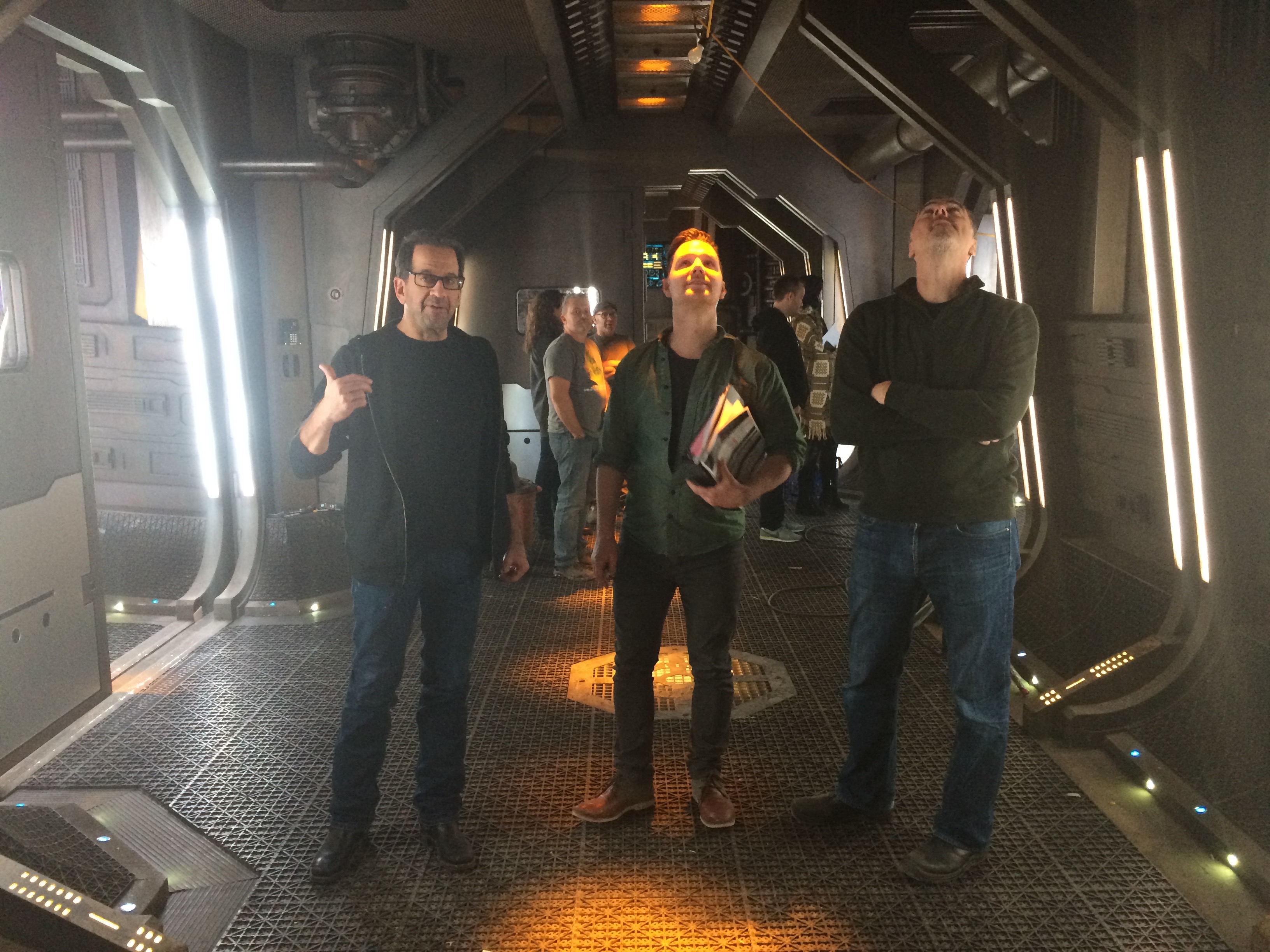 Director T.J. Scott heads up our read-thru. Roger Cross (Dark Matter’s SIX) is in his default mode: happy! Line Producer Norman Denver, on the other hand, looks like he’s received some troubling news. Hope it’s not budget-related.