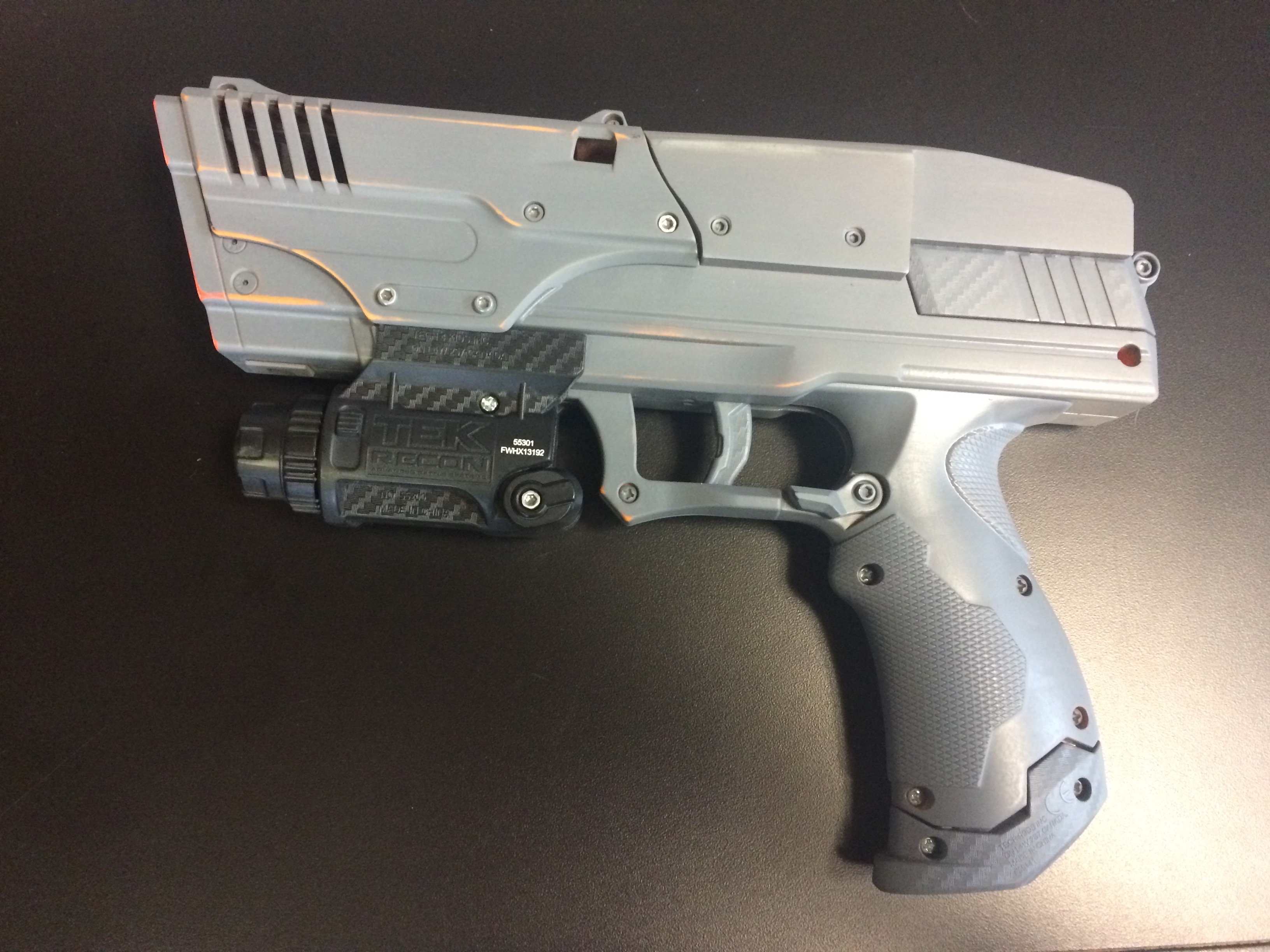 Love the prop gun. Nice details with the light (make it strobe for a cool effect) and magazine release on the trigger guard. Looking forward to additional weapon and set teasers.
