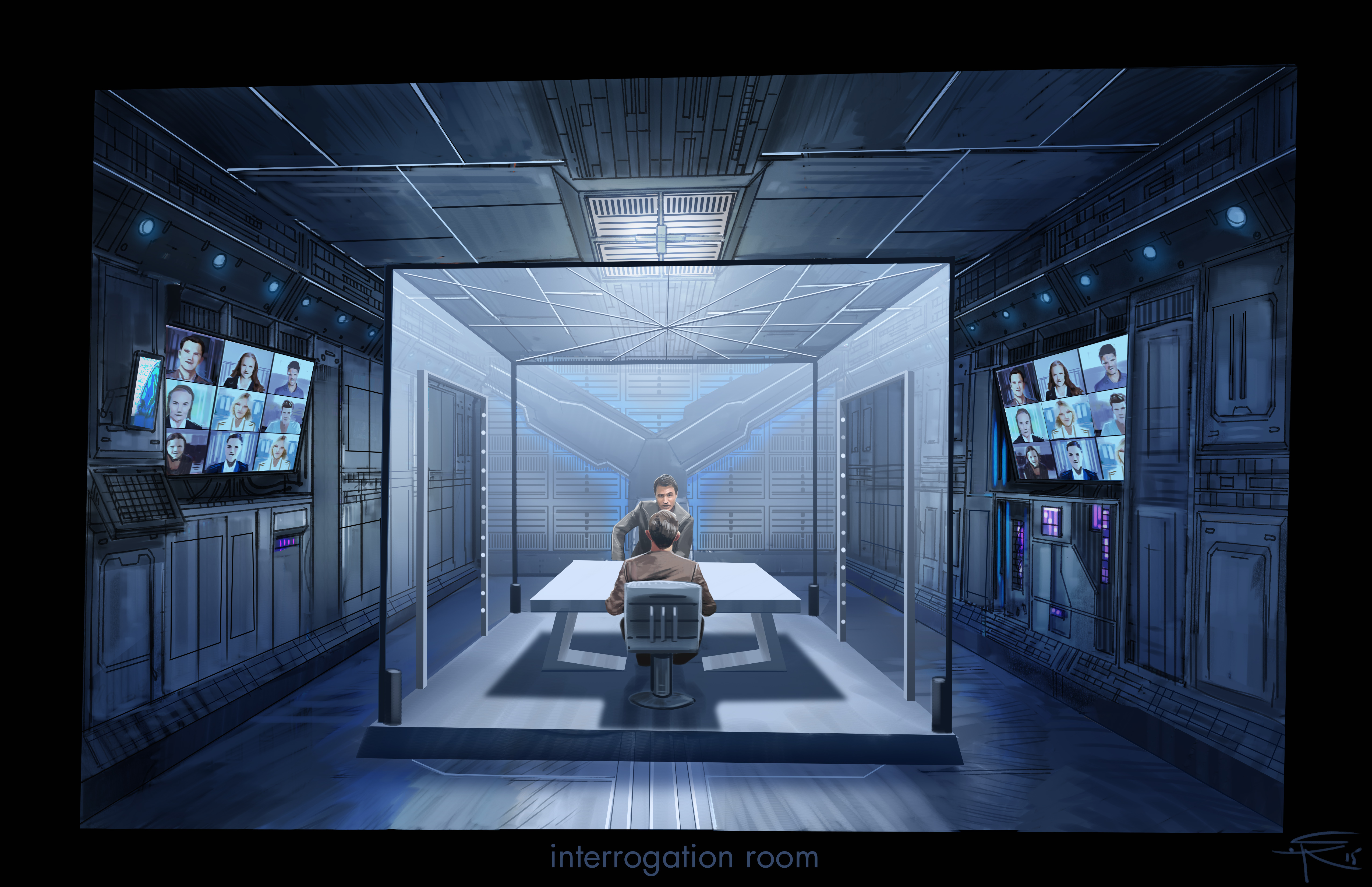 Interrogation room – concept illustrator Sanford Kong