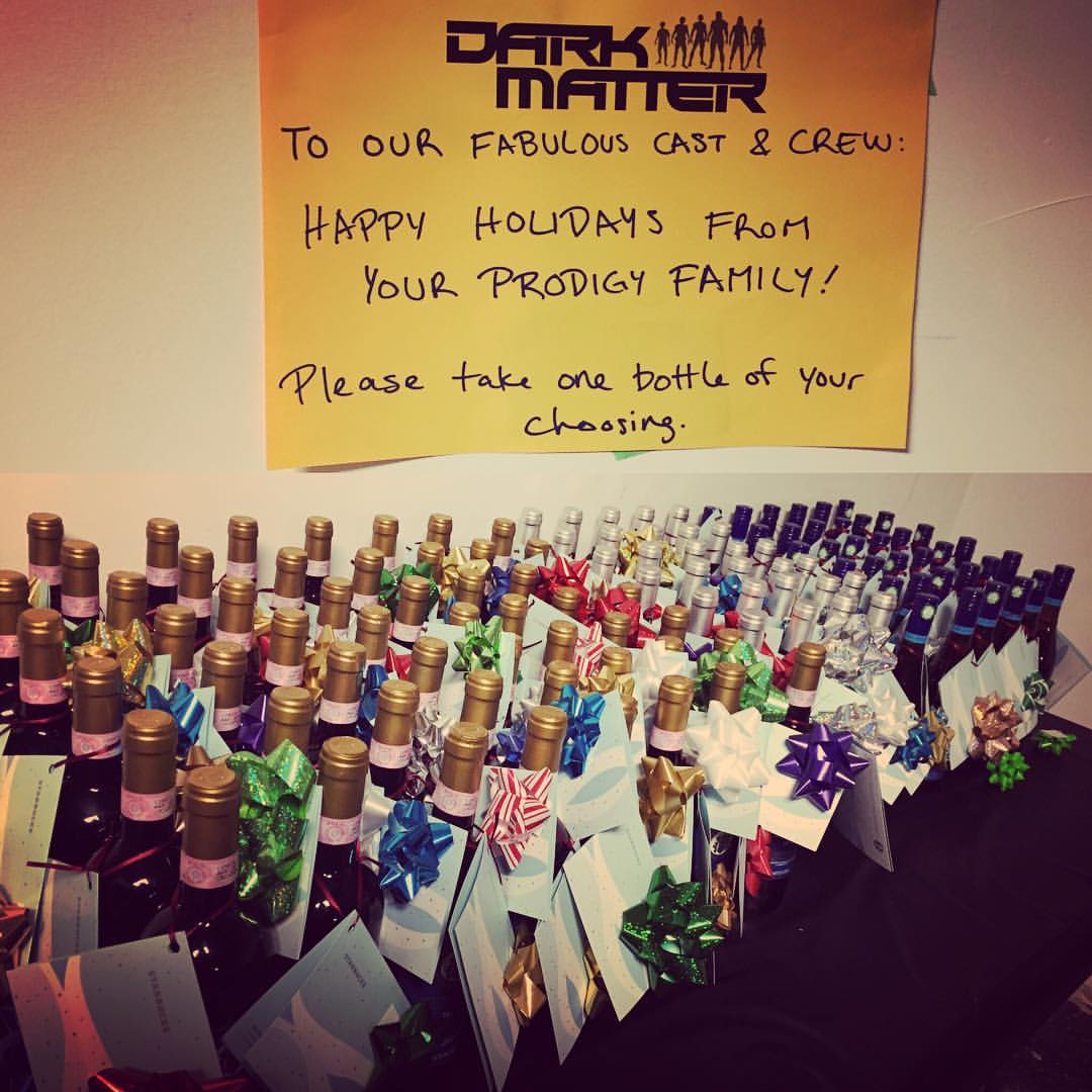 Answer: Jay Firestone (Prodigy Pictures) gifted the cast and crew wine and Starbucks gift certificates to kick off the show’s second season.