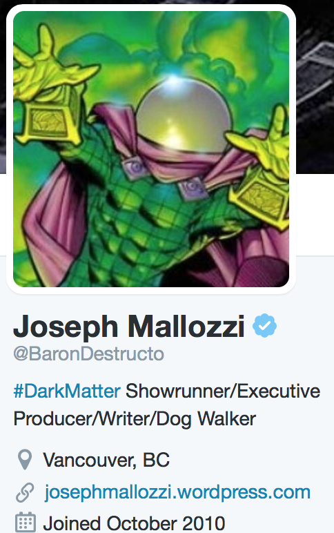 Cool another Joe Mallozzi Sci Fi series! When I lay awake at 3:30 am I am not creative I am desparately trying to get back to sleep. I’m with you I hate coming up with titles. Twitter verified means that that account belongs to the one and only officially Joseph Mallozzi – in case there’s a Joe Mallozzi wanna be out there, Twitterers know its’s really you.