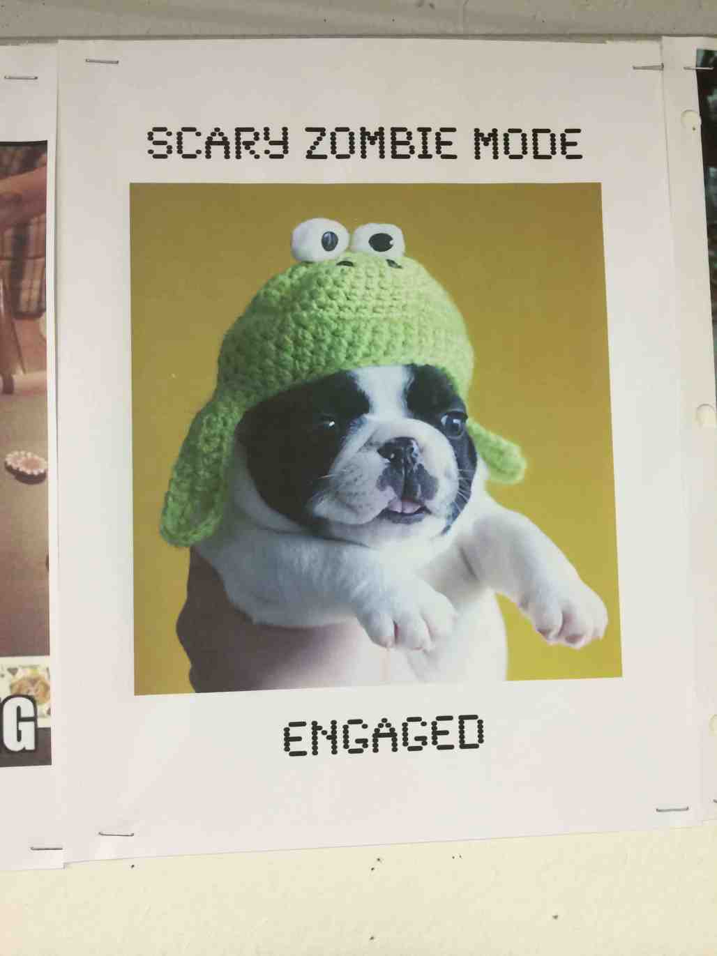 Last year, the wardrobe department put up Dark Matter-themed dog pictures, each corresponding to a particular episode of the show’s first season. For instance, this picture –