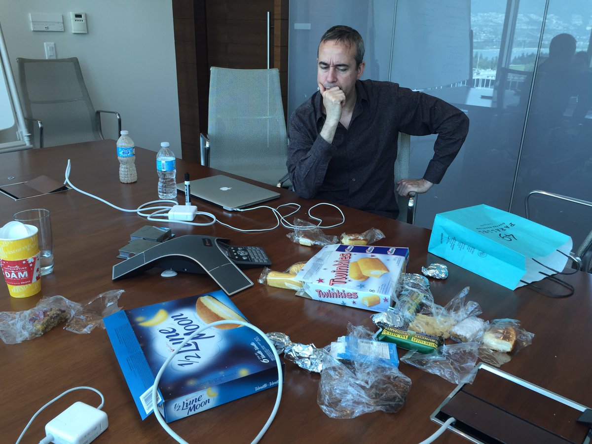 Today, the writers’ room convened for more pitching, spinning, and breaking. I can’t tell you how amazing and exciting it is to pay-off so much of what has come before, while setting up so much of what’s to come. I’m inspired by these wonderful characters, my fellow writers, and these surprise treats (c/o EP Paul Mullie) chock full o’ creamy goodness. Also high fructose corn syrup, calcium sulfate, and polysorbate 60!