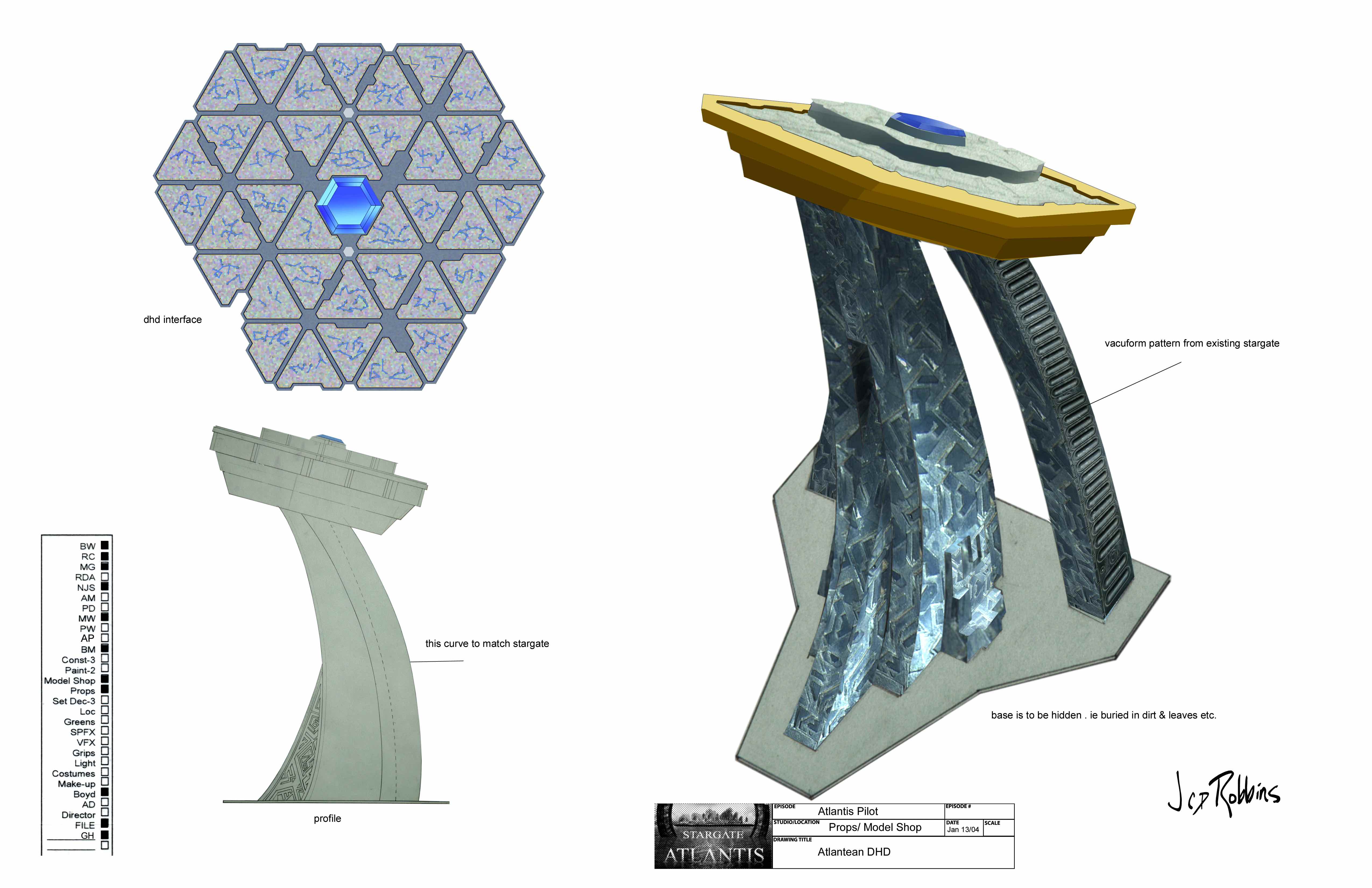 Hey, Stargate fans, I’ve got you covered. Check out the Atlantean DHD from the Stargate: Atlantis pilot, designed and drawn by the amazing James Robbins.