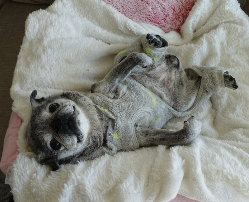 Love the pix of the girls! Can’t get over how much better Suji looks since your rescue of her. I’m sure you guys extended her life. Cute! Lulu’s shower cap photo.