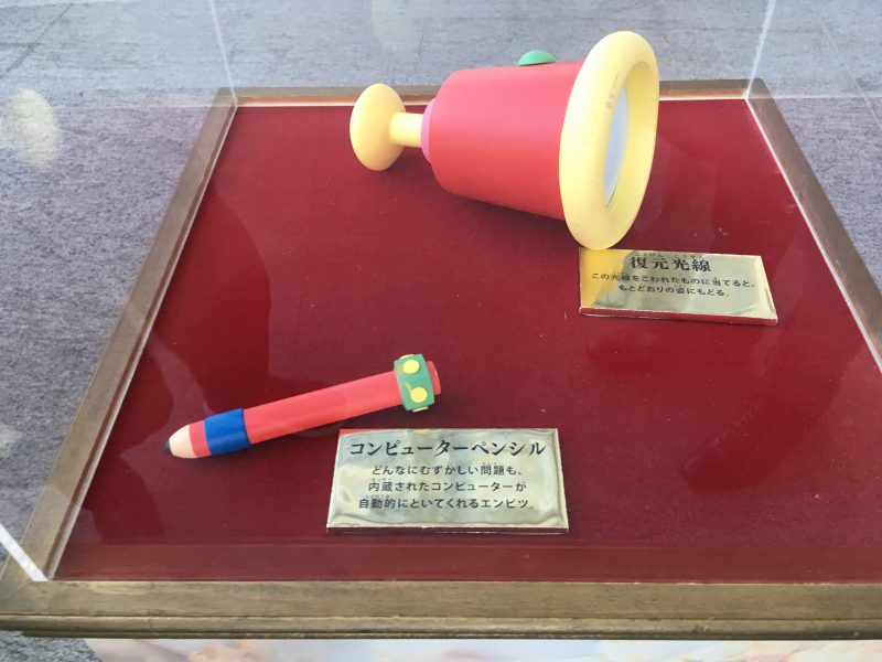 Our visit to TV Asahi took us to a mini museum display of one of Japan’s most iconic manga/cartoon characters, Doraemon, a robot cat from the future. The manga ran for almost 30 years while the animated series boasts three different incarnations numbering over 2300 episodes. Over the course of his innumerable adventures, Doraemon made use of a slew of wacky 22nd century items he brought back with him. Among them: an Anywhere Door that can take you – well – anywhere, special shoes that let you step into a book’s story, a device that makes dreams a reality, a passport that forgives your sins, a pen that solves any problem, a flashlight whose light beam returns damaged items to their original undamaged state, a cupid-like bow and arrow set, a megaphone that makes lies come true, a bread that acts as a notepad for you to write things down so that once consumed you’ll always be able to recall what you wrote/ate, a clone-creating camera, a doll that creates a kooky clone of whoever touches its nose, a belt that inhibits you from doing wrong, a mirror whose reflections become a reality allowing you to create multiple versions of whatever you put in front of it, a snack that allows animals to understand you, and puppet that will answer any question you ask it.