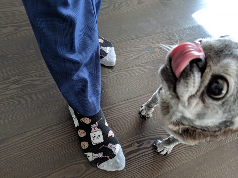Love your cufflinks! You better keep moving or Suji will lick your socks.