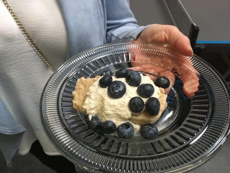 Props Master Victoria Klein with the pan-seared steel cut oatmeal with coconut milk, brown sugar, blueberries, and cashew and maple cream.